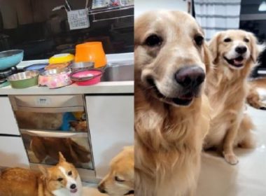 冬至吃湯圓!6隻阿金「坐一排開動」 整片黃金海有隻短腿狗亂入