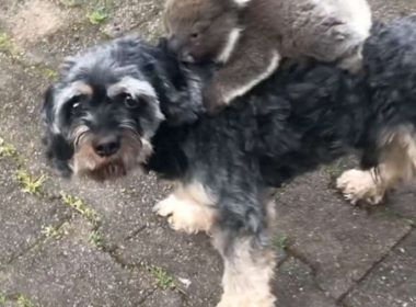 你就是我馬麻對不對~ 小無尾熊「緊抱灰汪汪」牠無辜抬頭看主人:怎麼辦啦QQ