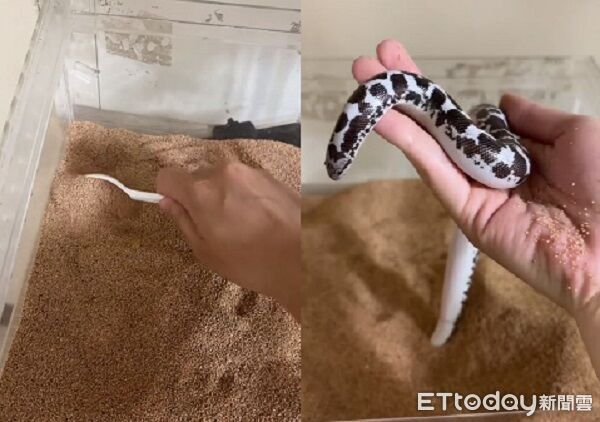 飼主「出土沙蚺」湯匙小心撥開 用手慢慢挖還真的拿出一隻蛇