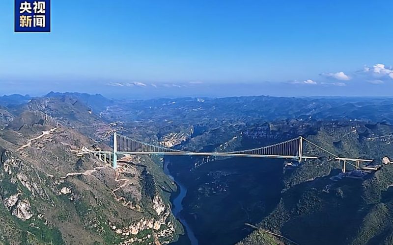 據大陸央視新聞報導,今天(9月28日),橫跨貴州省貞豐縣與關嶺縣的世界第一高橋——六安高速花江峽谷大橋正式建成通車。這座「橫竪」都是世界第一的超級大橋,主橋跨徑1420米,居山區橋梁世界第一;橋面至水面高差625米,同樣登頂世界第一,將成為連通貴州六枝至安龍高速公路的關鍵樞紐。