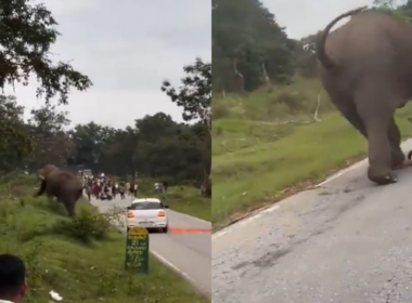 男遊客闖禁林開閃光燈自拍 被暴怒大象狂踩追殺「當眾扒內褲」